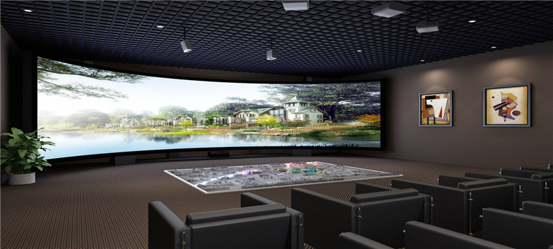環(huán)幕與數(shù)字沙盤組成的多功能展廳